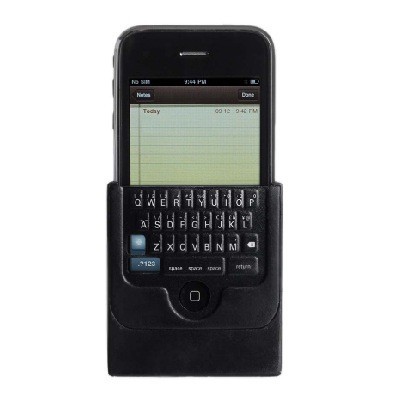 So then, the usage model here is to lug around the iTwinge until the moment you need to use the keypad…at which point you slide the thing on and use it to type (it apparently just presses right through to the screen). Then, when you’ve finished typing…you take this thing off again. That just sounds wonderful. Why, I already can’t imagine using an iPhone without it.