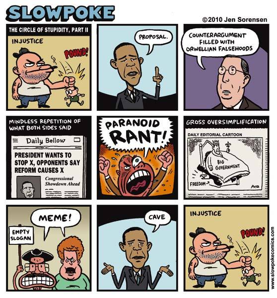 This gift on the part of the Democrat only serves to confirm the wildest fears of the far-right conspiracy nuts, whilst also giving ample cover for your garden variety, non-far-right pol to speak in whistle-tongue about this sort of utter lunacy, thus sweeping up the merely right wing along with the birthers and the rest of the lunatic fringe into one neat package. Apparently it’s considered a shrill move to try to splinter that particular block.