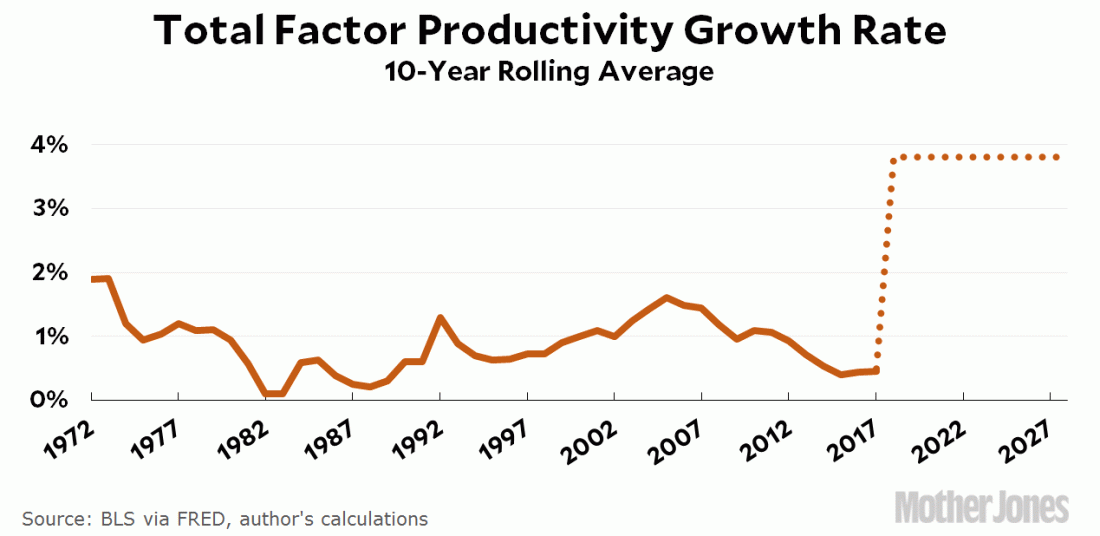 Via Kevin Drum, a superb chart showing just how historic the growth spurt would need to be to have a hope of actually paying for Trump’s one sheet master plan on taxes. Shouldn’t be a problem, right?